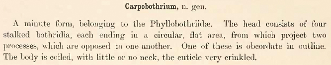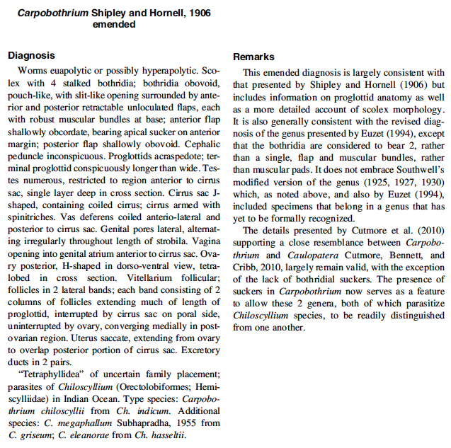 Type Species Carpobothrium chiloscyllii Shipley & Hornell, 1906