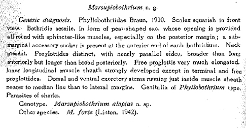 Type Species Marsupiobothrium alopias Yamaguti, 1952