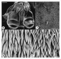surface. 8. Enlarged view of proximal bothridial surface. 9. Enlarged view of cephalic peduncle. Scale-bars: 6, 100 μm; 7-9, 2 μm.