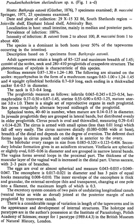 From Ivanov & Campbell, 2002. Fig. 20. Notomegarhynchus shetlandicum n. comb. Longitudinal section through a relaxed scolex, scale bar = 200µm. |