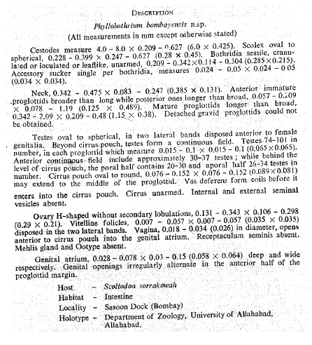 | Type Material | Department of Zoology, University of Allahabad, Allahabad (holotype) |