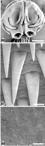 8688. P. tantulum n. sp. 86. Scolex, arrow indicates a medial bothridial lobe. 87. Cephalic