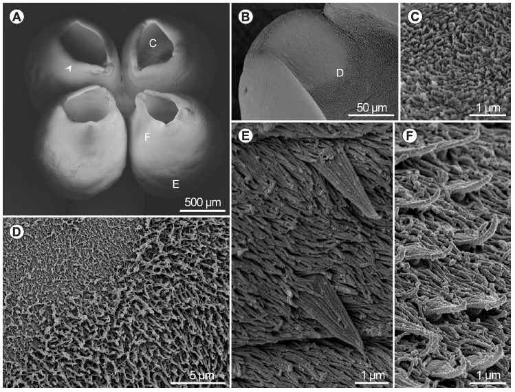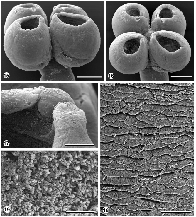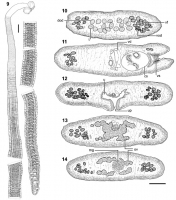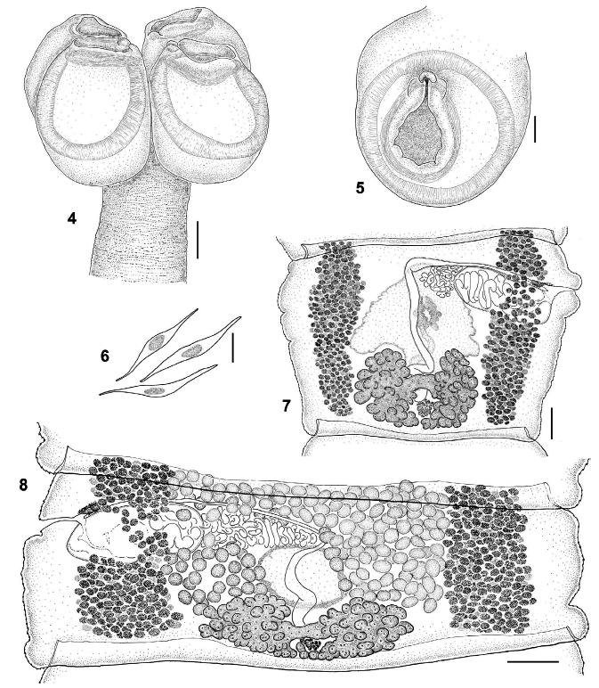 Total Number of Type Specimens 4 complete specimens and 1 specimen without scolex: 5 whole mounts, 1 scolex observed with SEM, and 1 gravid segment sectioned)
