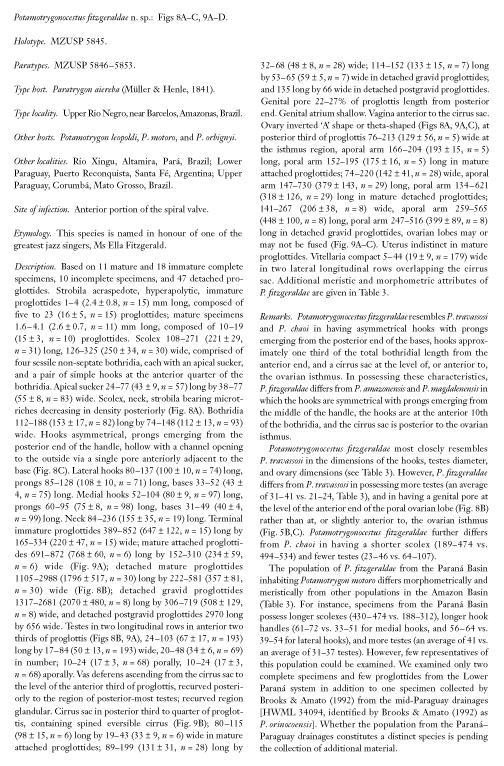 | Total Number of Type Specimens | 11 mature and 18 immature complete specimens, 10 incomplete specimens, and 47 detached proglottids |