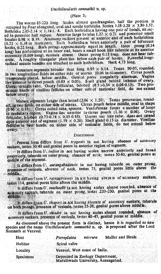 Deshmukh, R. A. 1979. On three new species of Uncibilocularis Southwell, 1925 (Cestoda: Onchobothriidae) from marine fishes with a key to the species of the genus. Proceedings of the National Academy of Sciences, India 49(B): 227-236. (3901) Download PDF |