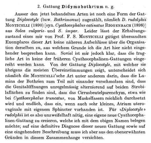 Type Species Didymobothrium rudolphii (Monticelli, 1890) Nybelin, 1922