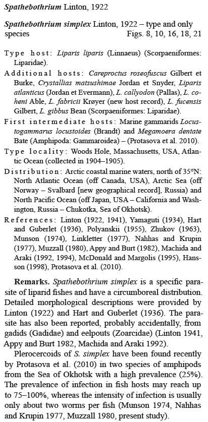 | Scientific Name Notes | Kuchta et al. (2014) reviewed the whole order, assessed the phylogenetic relationships of all genera and provided a survey of all valid species with new data on egg and scolex morphology and surface ultrastructure (i.e. microtriches). |