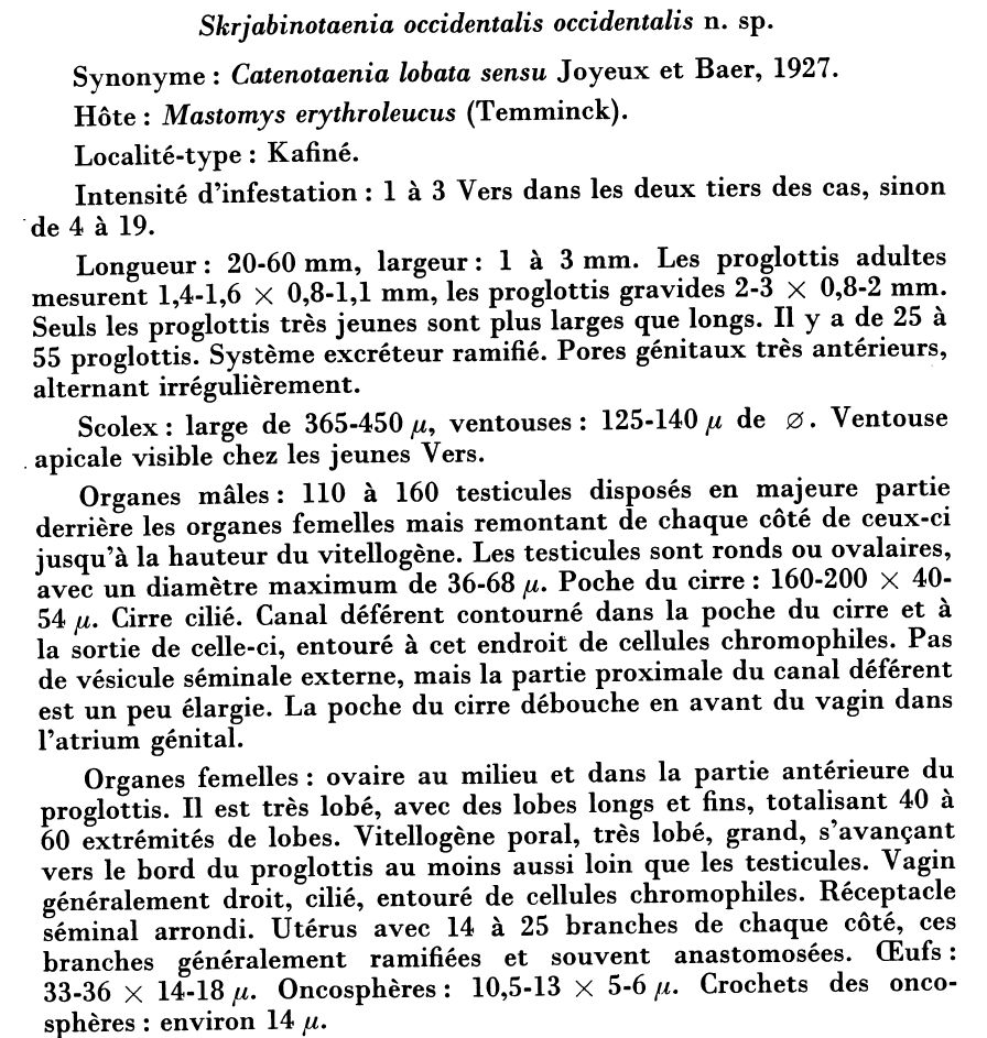 | Valid Name | Skrjabinotaenia occidentalis Hunkeler, 1972 |