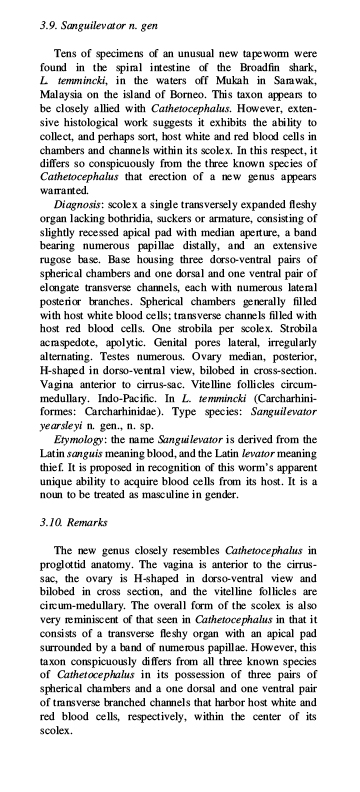 | Type Species | Sanguilevator yearsleyi Caira, Mega & Ruhnke, 2005 |