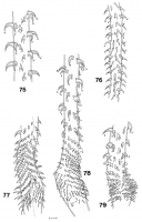 Figs 75-79. Deanicola minor, gen. et sp. nov., tentacular armature; 75, internal surface, metabasal region; 76, external surface, metabasal region; 77, external surface, basal region, broken line indi... MoreFigs 75-79. Deanicola minor, gen. et sp. nov., tentacular armature; 75, internal surface, metabasal region; 76, external surface, metabasal region; 77, external surface, basal region, broken line indicates middle of external surface; 78, bothridial surface, basal and metabasal regions; 79, internal surface, basal region. Scale line, 0.1mm. |