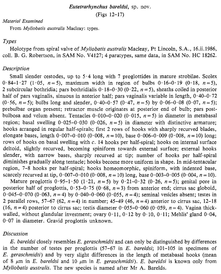 | Synonyms | Eutetrarhynchus bareldsi Beveridge, 1990 |