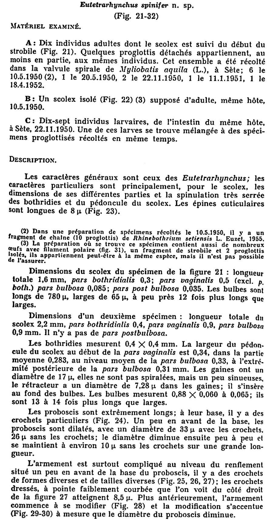 | Synonyms | Eutetrarhynchus spinifer Dollfus, 1969 |