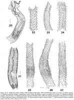Figures 20–27. Dollfusiella spinifer (Dollfus, 1969) Campbell & Beveridge, 1994 from Myliobatis aquila. 20. Scolex. 21. Mature segment.