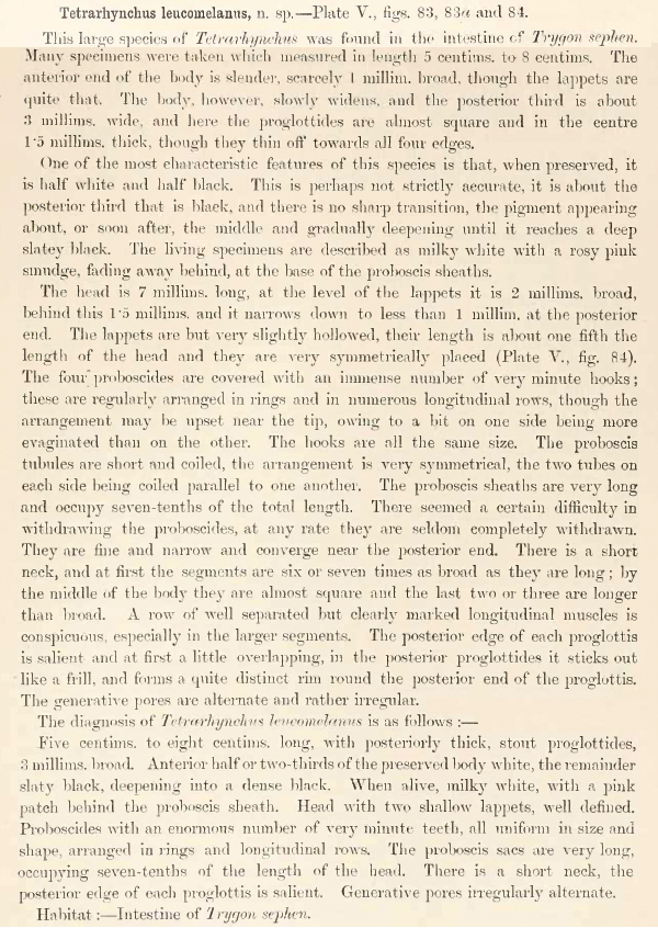 | Synonyms | Tetrarhynchus leucomelanus Shipley & Hornell, 1906 |