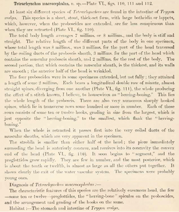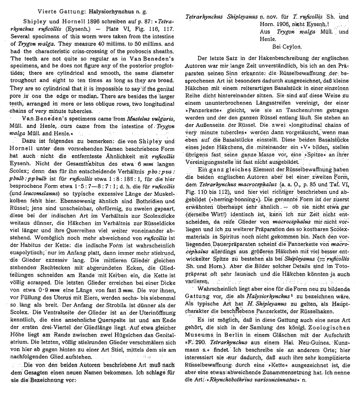 Shipley, A. E. and J. Hornell. 1906. Report on the cestode and nematode parasites from the marine fishes of Ceylon. Report to the Government of Ceylon on the Pearl Oyster Fisheries of the Gulf of Manaar (Herdman), Part 5 5: 43-96. (431) Download PDFPintner, T. 1913. Vorarbeiten zu einer Monographie der Tetrarhynchoideen. Sitzunzberichten der Akademie der Wissenschaften in Wien. Mathematik-Naturwissenschaften Classe 122: 171-253. (4384) Download PDF |