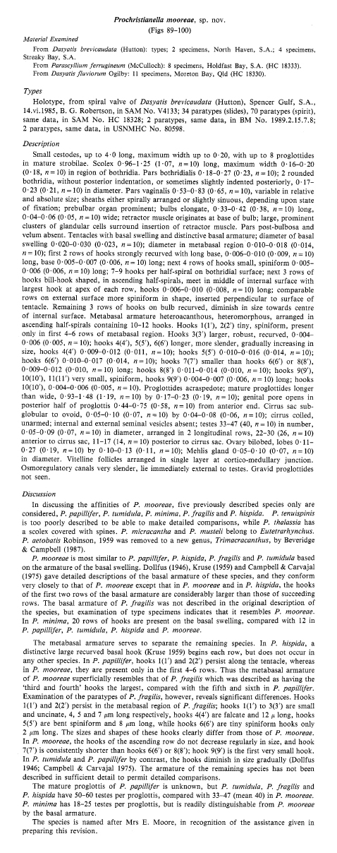 Beveridge, I. 1990. Taxonomic revision of Australian Eutetrarhynchidae Guiart (Cestoda: Trypanorhyncha). Invertebrate Taxonomy 4(4): 785-845. (4255) Download PDF |