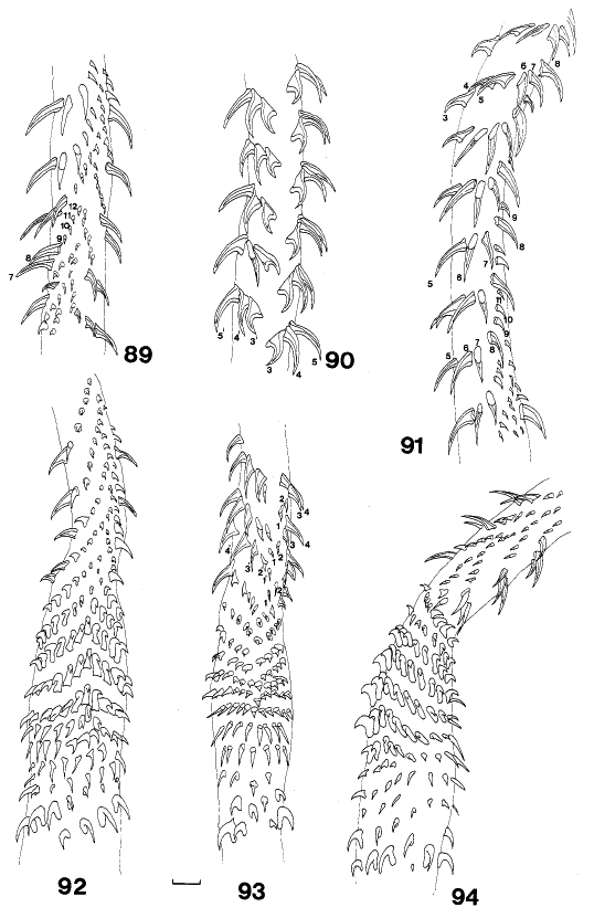 Figs 89-94. Prochristianella mooreae, sp. nov. 89, metabasal armature, external surface; 90,