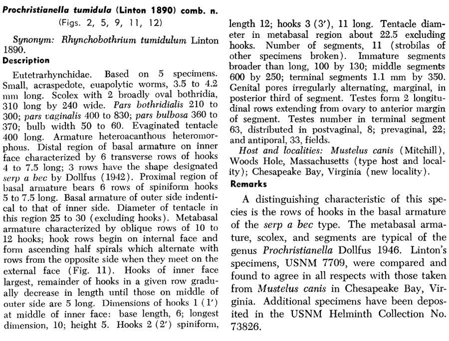 | Synonyms | Rhynchobothrium tumidulum Linton, 1890; Callitetrarhynchus tumidula (Linton, 1890) Pintner, 1931 |