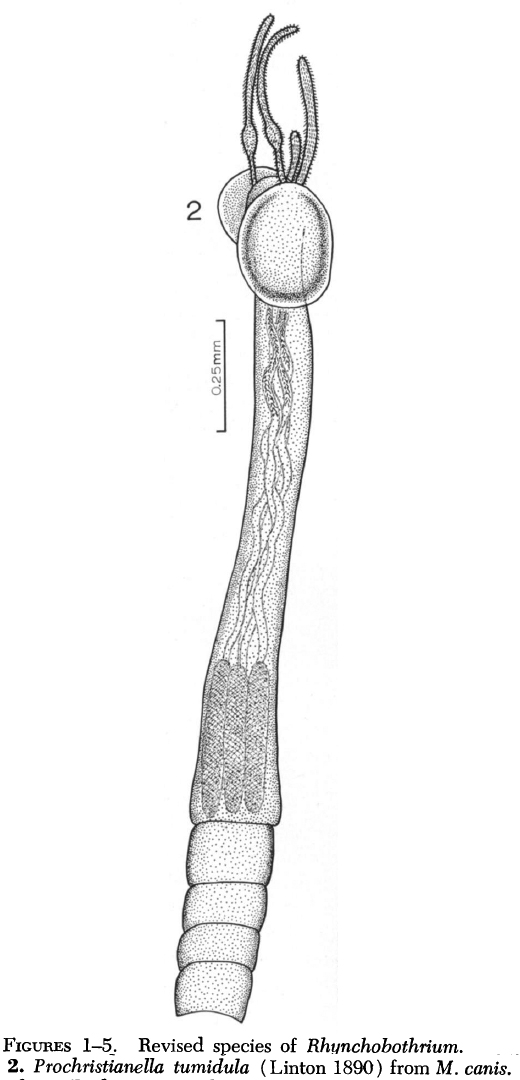 FIGURES 1-5. Revised species of Rhynchobothrium. 2. Prochristianella tumidula (Linton 1890) from M. canis.