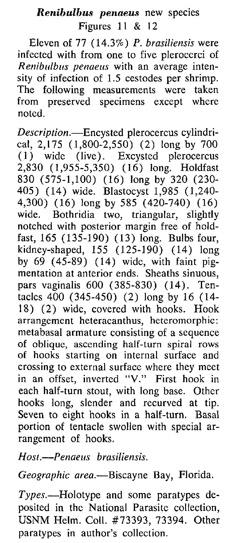| Synonyms | Renibulbus penaeus Feigenbaum, 1975; Eutetrarhynchus penaeus (Feigenbaum, 1975) Schmidt, 1986 |