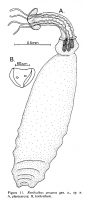 Figure 11. Renibulbus penaeus gen. n., sp. n. A, plerocercus; B, bothridium.