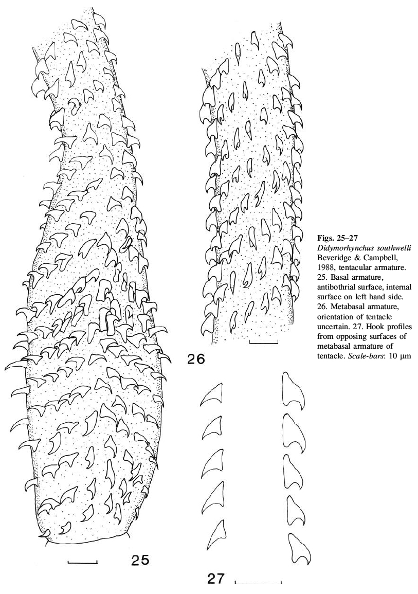 Beveridge, I. 2008. Redescriptions of species of Tetrarhynchobothrium Diesing, 1850 and Didymorhynchus Beveridge & Campbell, 1988 (Cestoda: Trypanorhyncha), with the description of Zygorhynchus borneensis n. sp.. Systematic Parasitology 69: 75–88.