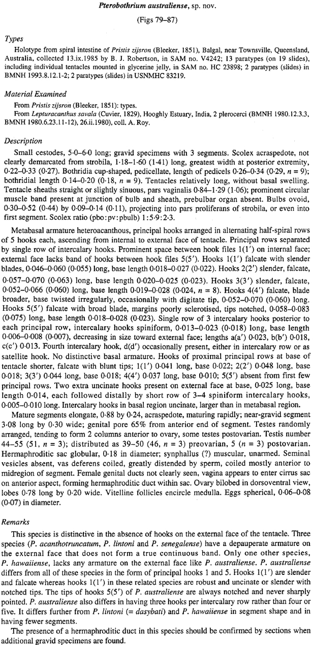 | Voucher Material | From Lepturacanthus savala (Cuvier, 1829), Hooghly Estuary, India, 2 plerocerci (BMNH 1980.12.3.3, BMNH 1980.6.23.1 1-12) |