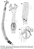 Figs 79-82. Pterobothriurn australiense, sp. nov., from Pristis zijson. 79, entire worm; 80, scolex; 81, immature segment; 82, terminal genitalia, note division of duct within hermaphroditic