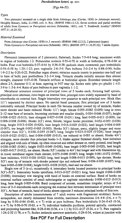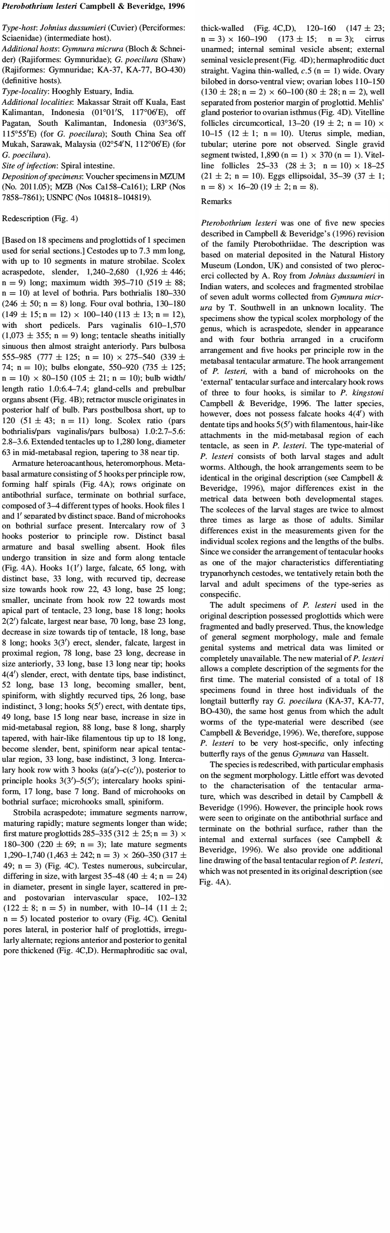 | Host Notes | Also reported from Gymnura poecilura in redescription by Schaeffner & Beveridge (2012) (KA-37, KA-77, BO-430) (now Gymnura cf. poecilura 1) |