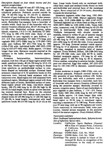 | Total Number of Type Specimens | Based on four whole worms and a few apolytic proglottides |