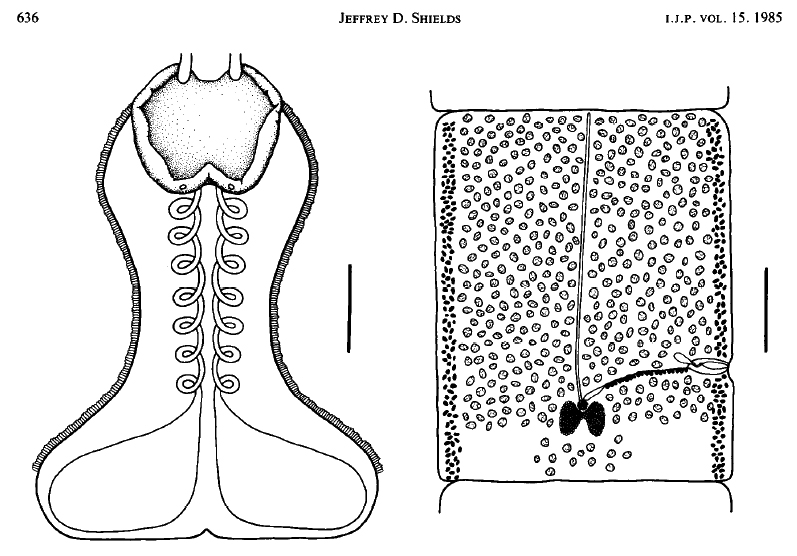 Shields, J. D. 1985. Surface morphology and description of Otobothrium kurisi new species (Cestoda: Trypanorhyncha) from a hammerhead shark, Sphyrna lewini. International Journal for Parasitology 15: 635-643. (406) Download PDF |