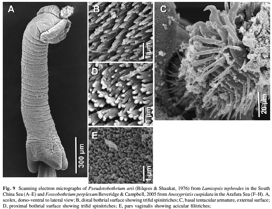 Fig. 9 Scanning electron micrographs of Pseudotobothrium arii (Bilqees & Shaukat, 1976) from Lamiopsis tephrodes in the South