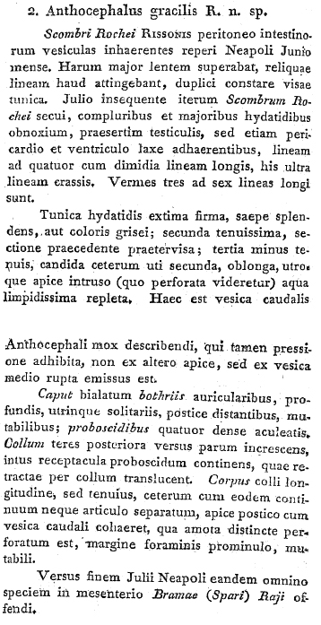 | Scientific Name Notes | Name first mentioned on page 178 of Rudolphi (1891) (page 186 of PDF); description starts on page 540 of Rudolphi (1891) (page 548 of PDF). Detailed redescription by Dollfus (1942); segment morpholgy in Beveridge & Campbell (1996) and new line drawings and SEMs in Carvajal & Rego (1985); additional SEM in Haseli et al. (2016) (citation # 7078) |