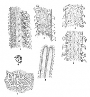 Metabasal tentacle armature showing external face, note the chainette at the centre; 3. Tentacle armature showing internal face.