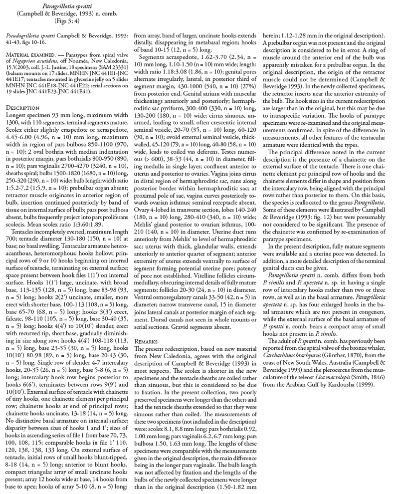Paragrillotia spratti (Campbell & Beveridge, 1993) Beveridge & Justine, 2007