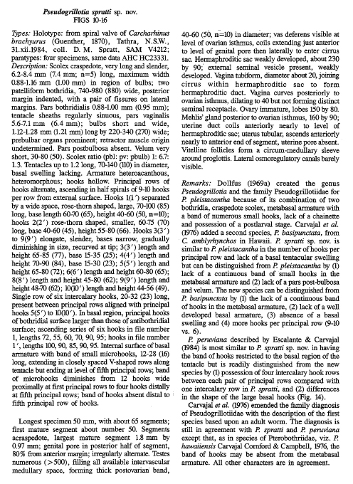Campbell, R. A. and I. Beveridge. 1993. New species of Grillotia and Pseudogrillotia (Cestoda: Trypanorhyncha) from Australian sharks, and definition of the family Grillotiidae Dollfus, 1969. Transactions of the Royal Society of South Australia 117: 37-46.