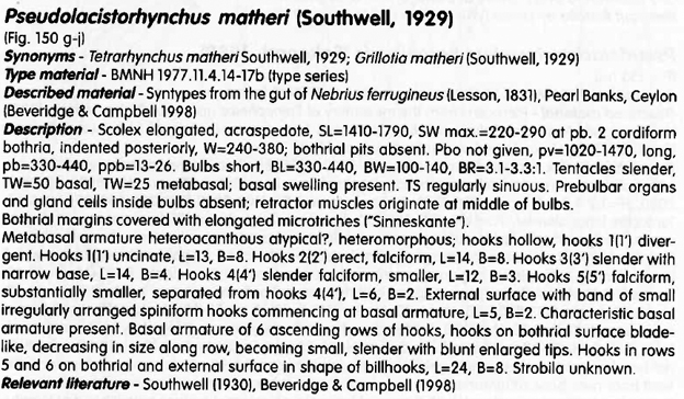 | Synonyms | Tetrarhynchus matheri Southwell, 1929; Grillotia matheri (Southwell, 1929) Beveridge & Campbell, 1998 |