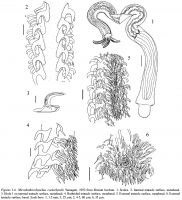 tentacle surface, basal. Scale-bars: 1, 1.5 mm; 3, 25 μm; 2, 4-5, 60 μm; 6, 35 μm.