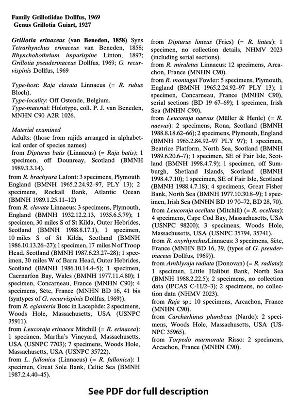 Leucoraja naevus, Plymouth, UK). 3. Matur... MoreFigs. 1–5 Grillotia erinaceus (van Beneden, 1858). 1.