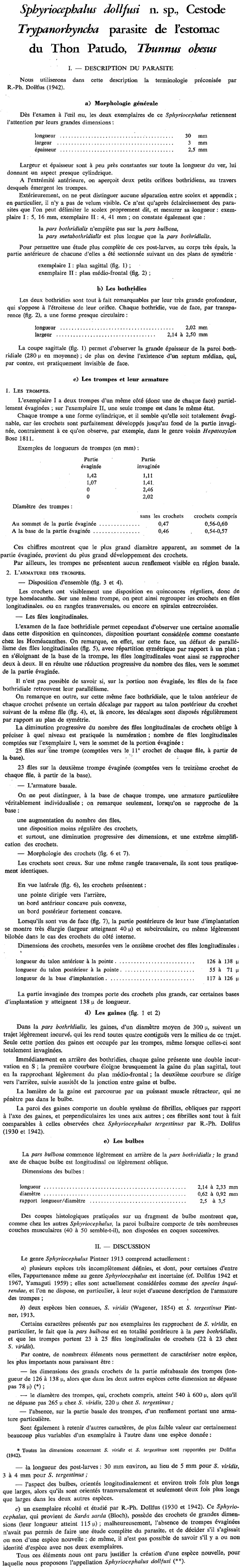 Bussieras, J. and J.-F. Aldrin. 1968. Sphyriocephalus dollfusi n.sp., Cestode Trypanorhyncha parasite de l’estomac du thon patudo, Thunnus obesus. Annales de parasitologie humaine et comparee 43: 645-653. (4356) Download PDF |