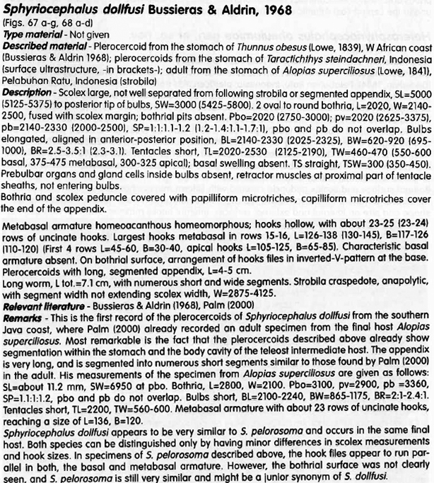 | Host Notes | Site in host given literally as "cavité gastrique". Additional hosts given in Palm (2004): Tarachtichthys steindacheri (larvae); Alopias superciliosus (adults) |