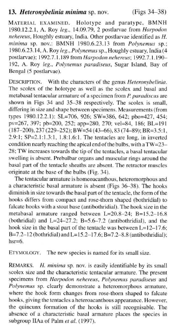 Palm, H. W. 1999. Nybelinia Poche, 1926, Heteronybelinia gen. nov. and Myxonebelinia gen. nov. (Cestoda: Trypanorhyncha) in the collections of The Natural History Museum, London. Bulletin of the Natural History Museum, London (Zoology series) 65(2): 133-153. (4368) Download PDF |