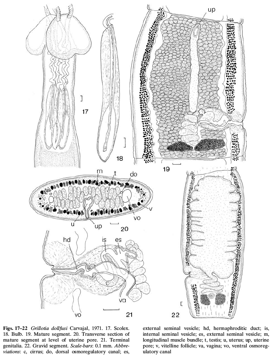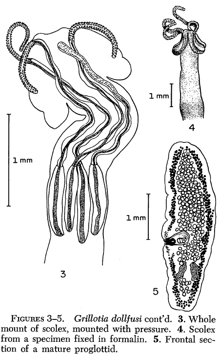 Beveridge, I. and R. A. Campbell. 2007. Revision of the Grillotia erinaceus (van Beneden, 1858) species complex (Cestoda: Trypanorhyncha), with the description of G. brayi n. sp.. Systematic Parasitology 68: 1-31.