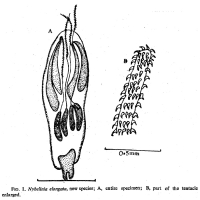 FIG. 1. Nybelinia elongata, new species; A, entire specimen; B, part of the tentacle enlarged.