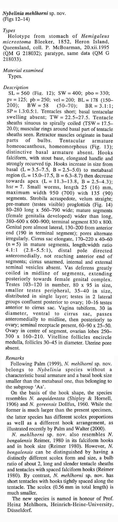 FIGURES 12-14. Nybelinia mehlhorni sp. nov. from Hemigaleus microstoma. Types, QM G 218032-3. 12.