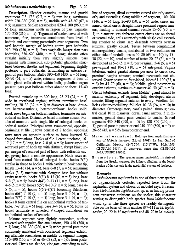 Mobulocestus nephritidis Campbell & Beveridge, 2006