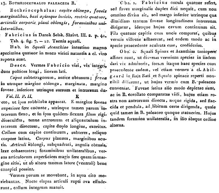 Rudolphi, C. A. 1810. Entozoorum, sive vermium intestinalium. Historia naturalis. Volumen II, Part II. Sumptibus Tabernae Librariae et Artium, Amstelaedami, 386 pp. (4735) Download PDF |