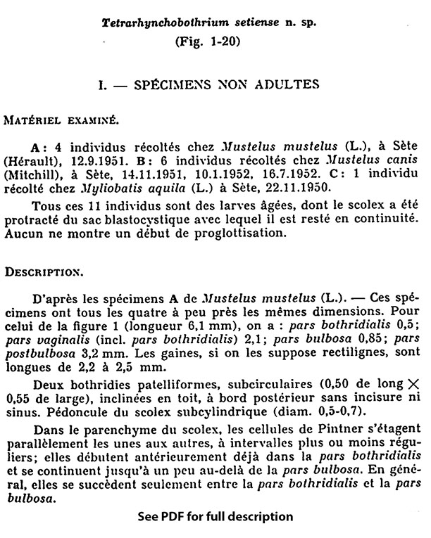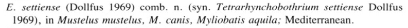 | Synonyms | Tetrarhynchobothrium settiense Dollfus, 1969 |
