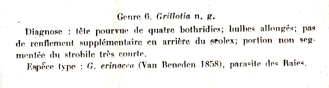 | Type Species | Grillotia erinaceus (van Beneden, 1858) Guiart, 1927 |