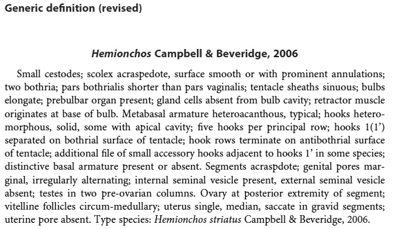 Type Species Hemionchos striatus Campbell & Beveridge, 2006